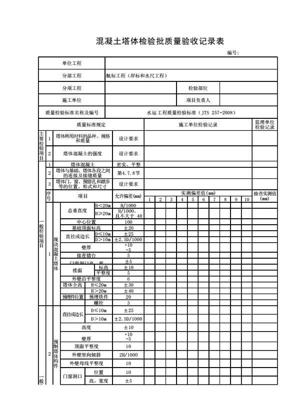 混凝土塔体检验批质量验收记录表