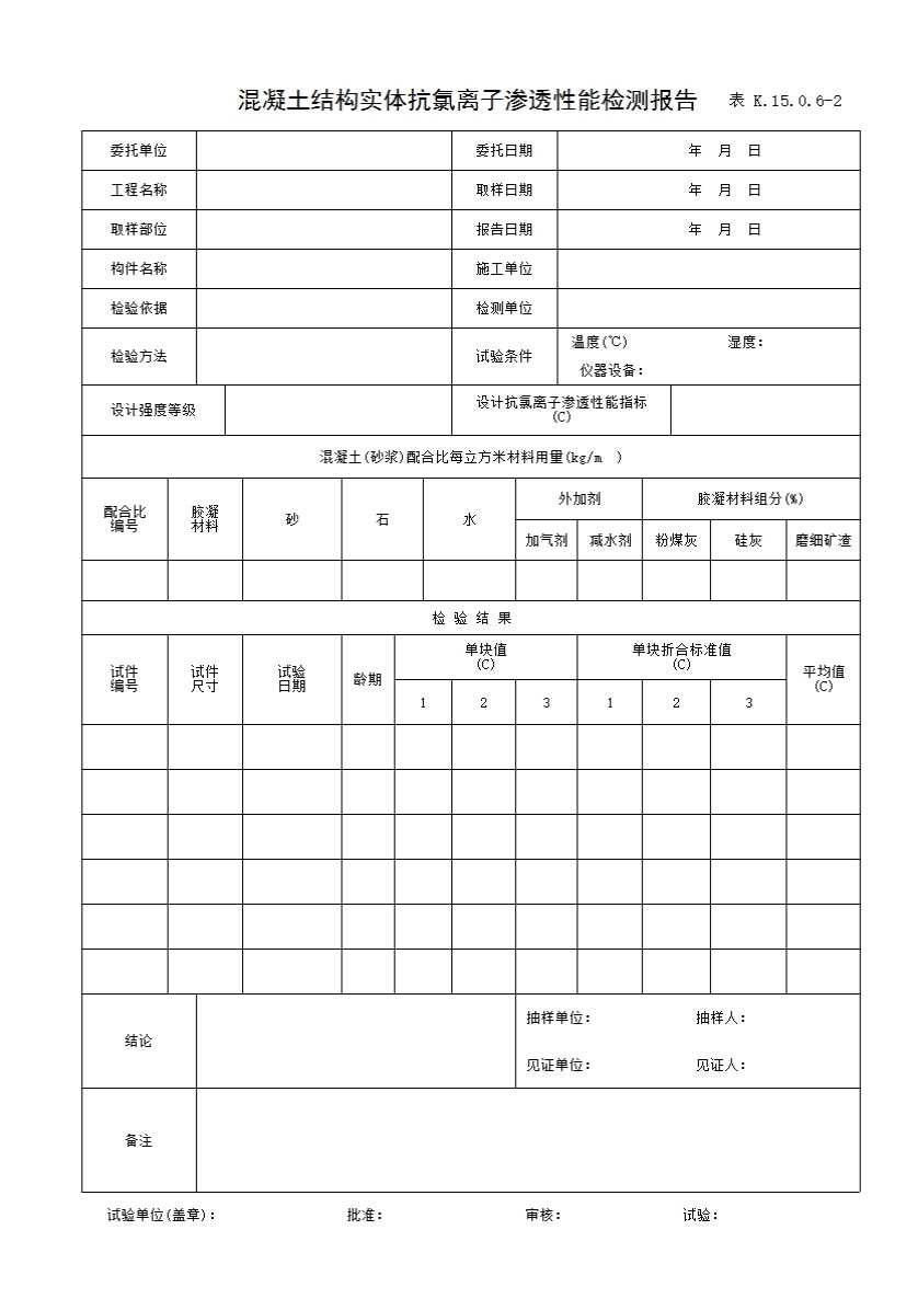 表K.15.0.6-2 混凝土结构实体抗氯离子渗透性能检测报告