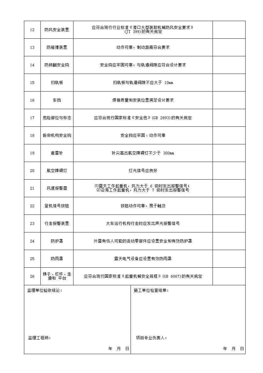 表格名称:表K.15.0.7 起重装卸设备安全装置的质量检验记录