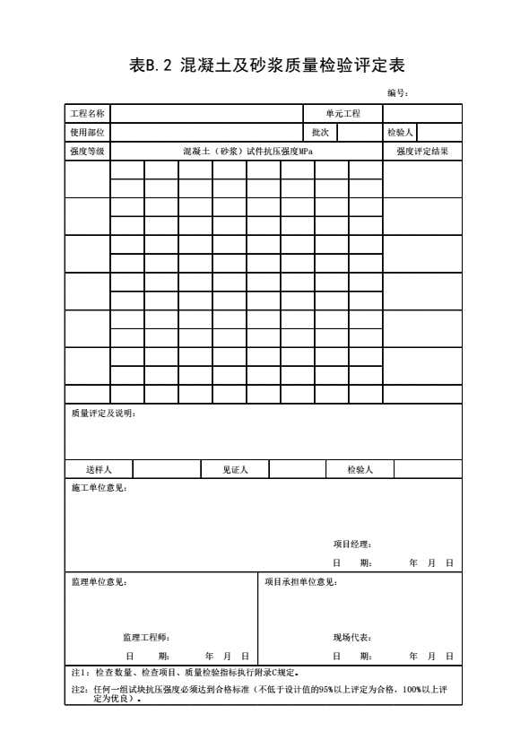 表格名称:表B.2 混凝土及砂浆质量检验评定表