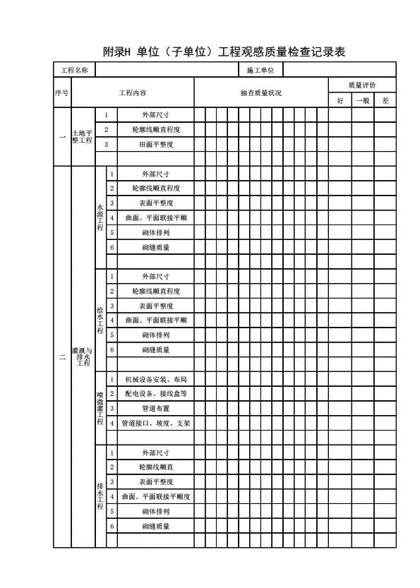 表格名称:附录H 单位(子单位)工程观感质量检查记录表