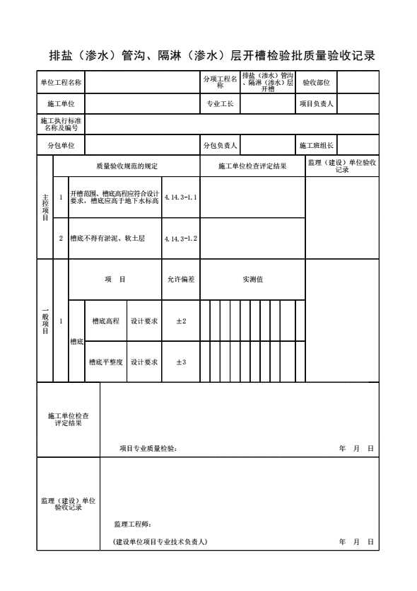 表格名称:排盐(渗水)管沟、隔淋(渗水)层开槽检验批质量验收记录