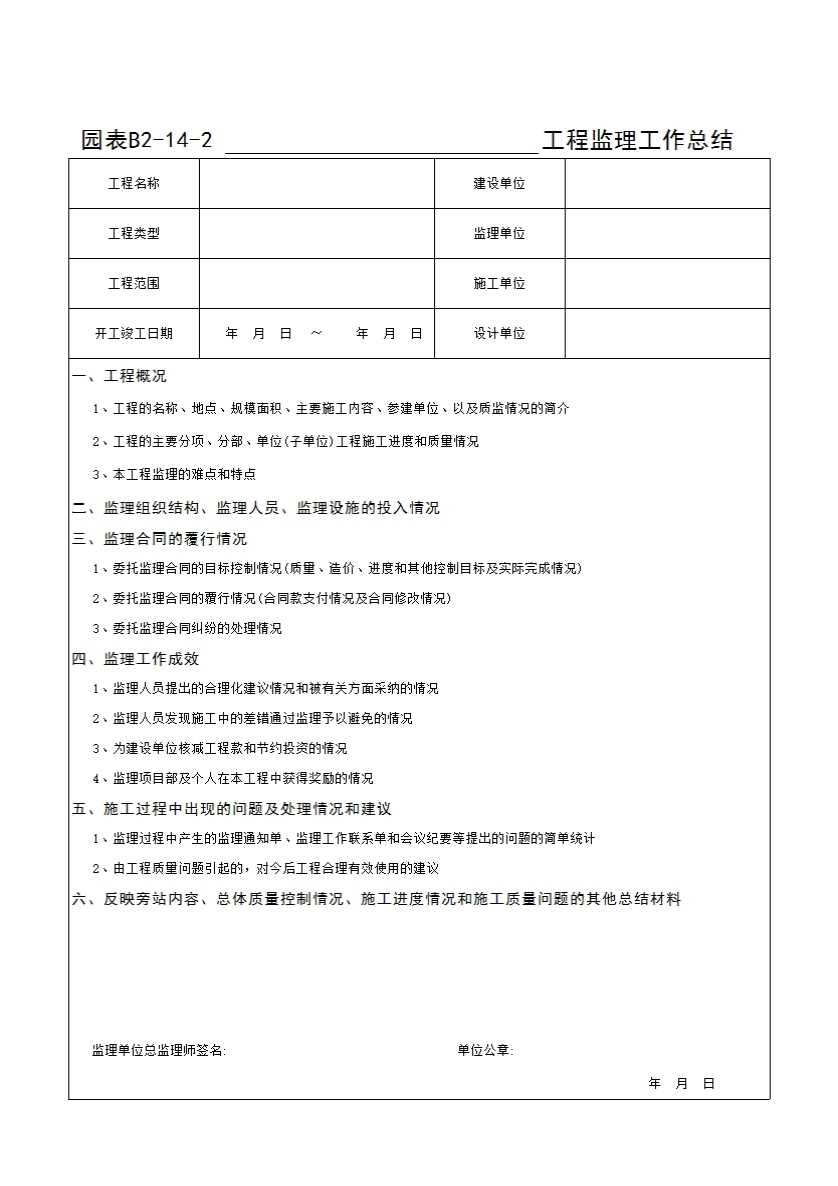 表格名称:园表B2-14-2 ____工程监理工作总结