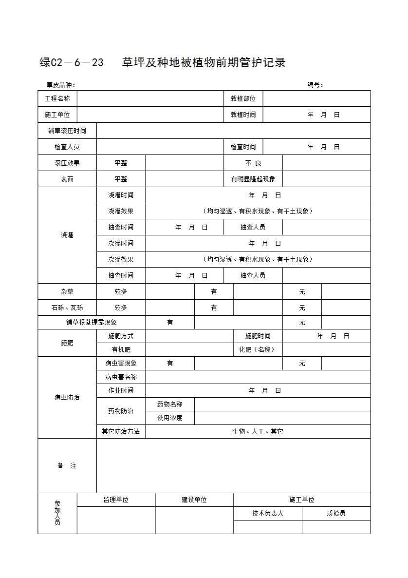表格名称:绿C2-6-23 草坪及种地被植物前期管护记录
