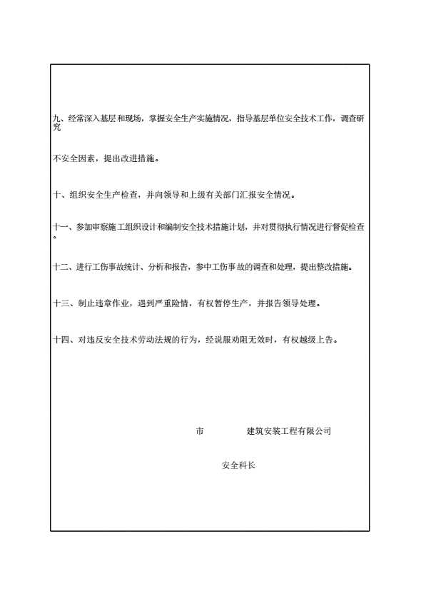 工程项目部各部门和各级人员安全生产岗位责任制安1—4