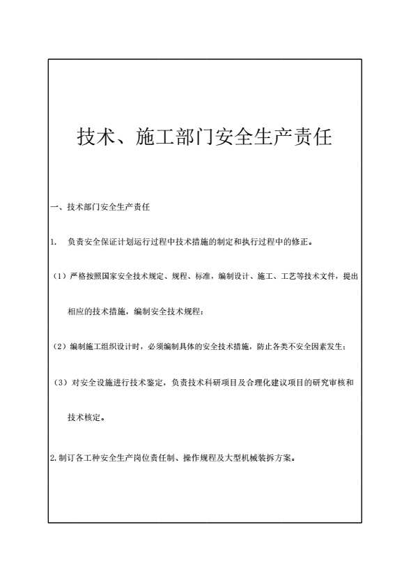 表格名称:技术、施工部门安全生产责任