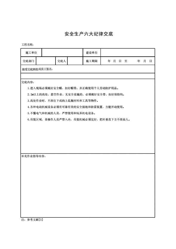 表格名称:安全生产六大纪律交底