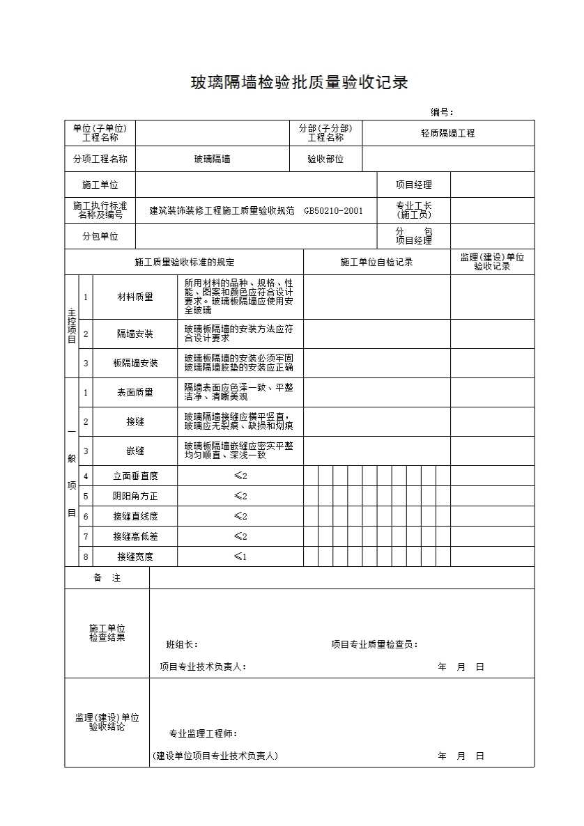 a) 适用范围: 本条适用于玻璃板隔墙工程的质量验收。