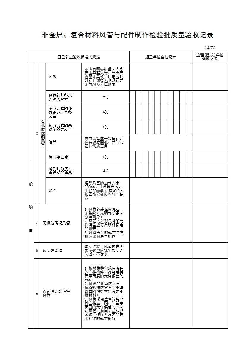 非金属、复合材料风管与配件制作检验批质量验收记录