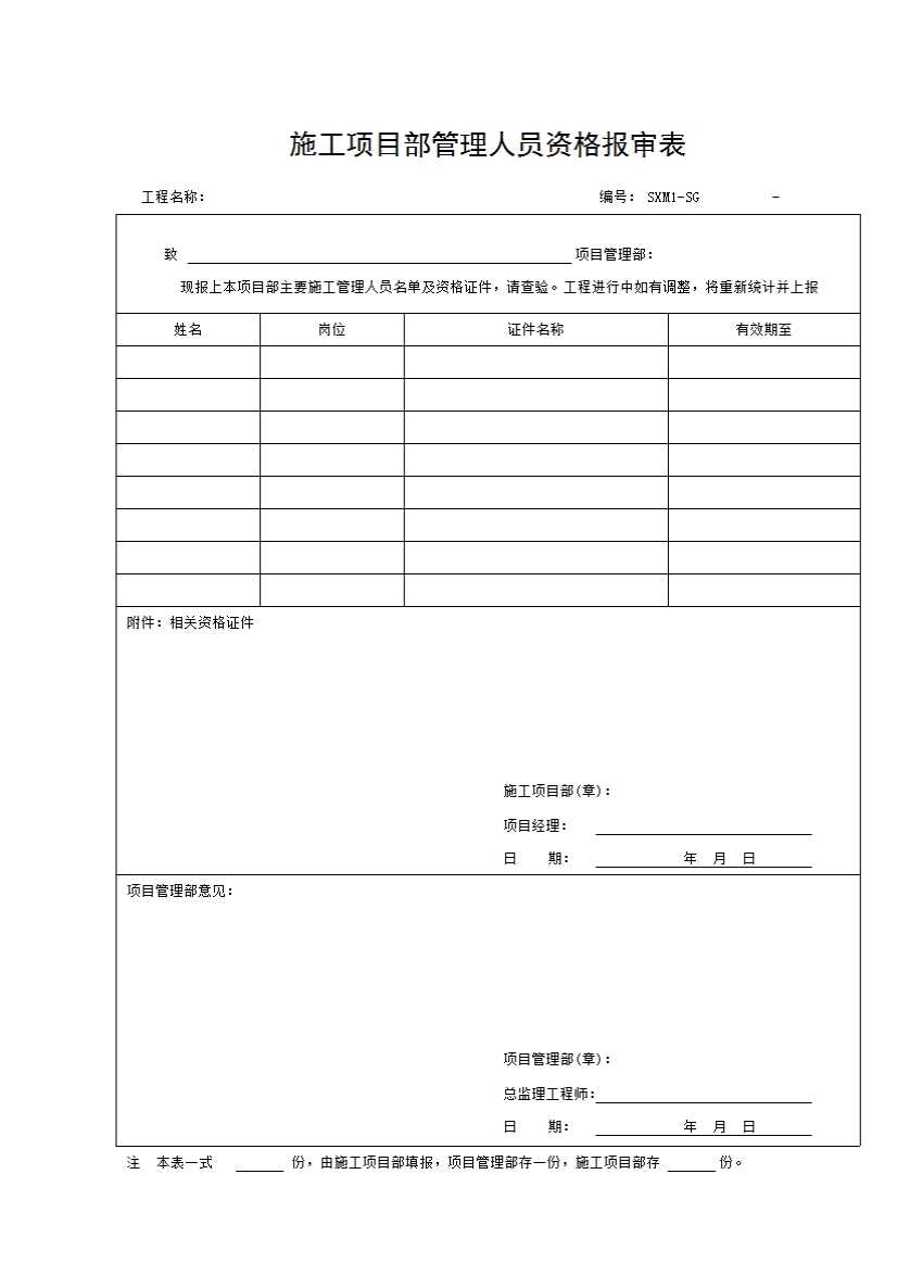 SXM1 施工项目部管理人员资格报审表