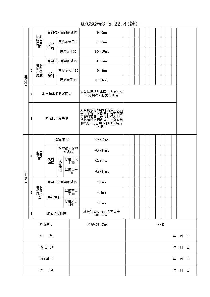 表格名称:QCSG 表 3-5.22.4 聚合物水泥砂浆防腐蚀工程检验批质量验收记录表