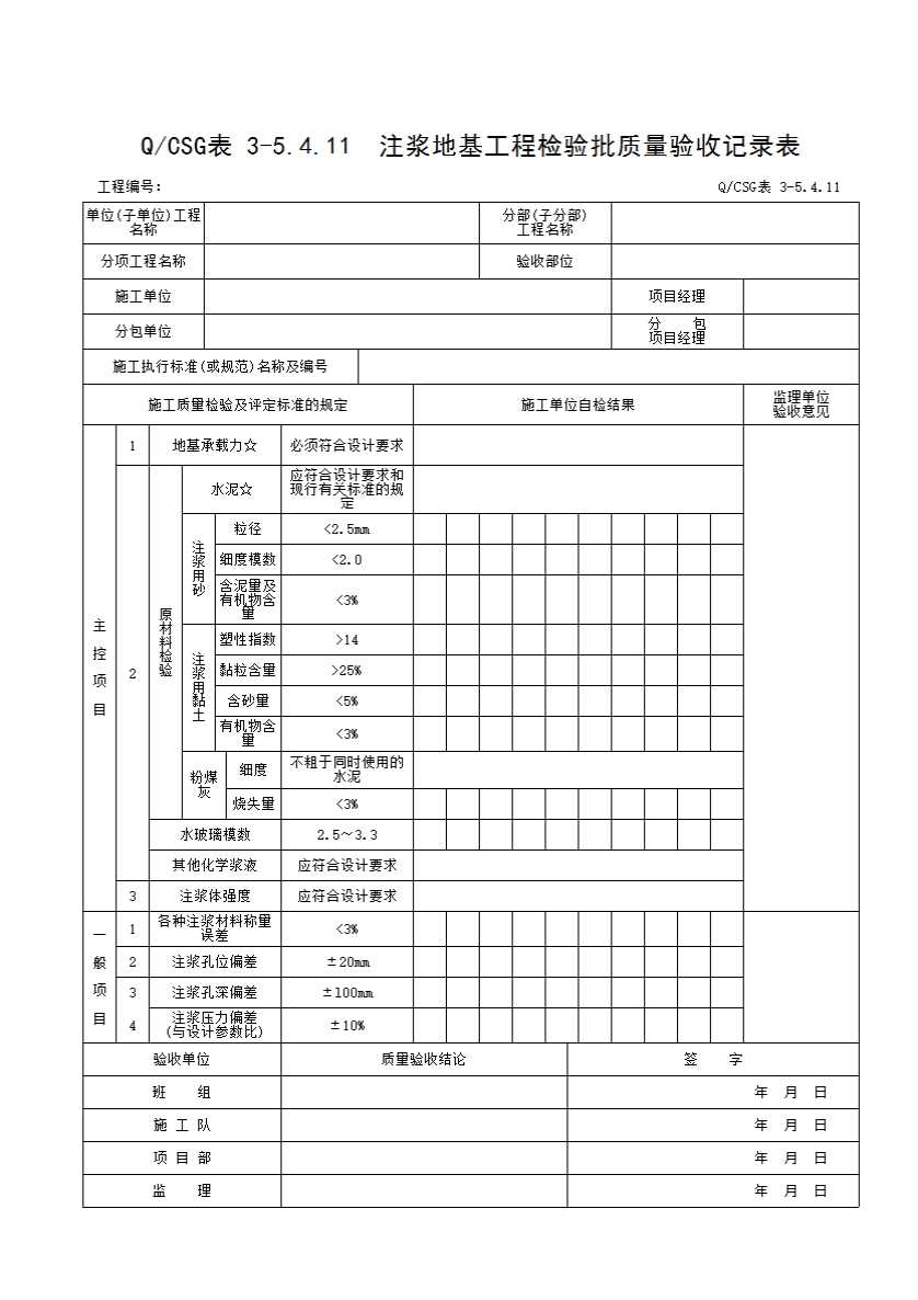 QCSG 表 3-5.4.11 注浆地基工程检验批质量验收记录表