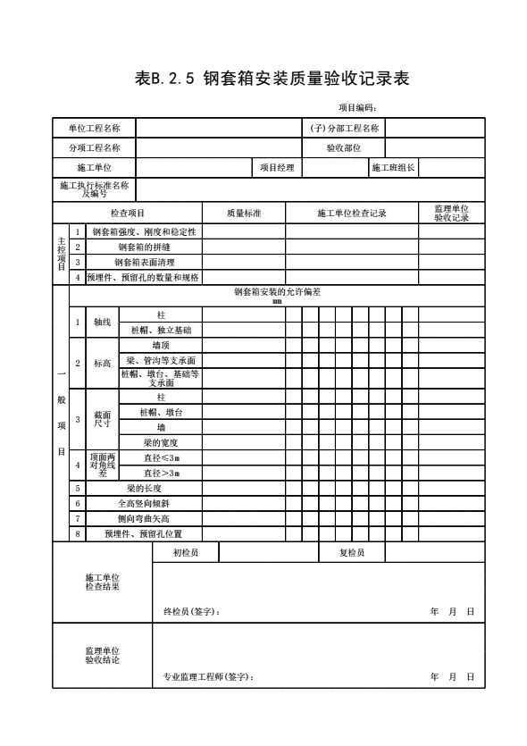 表格名称:表B.2.5 钢套箱安装质量验收记录表