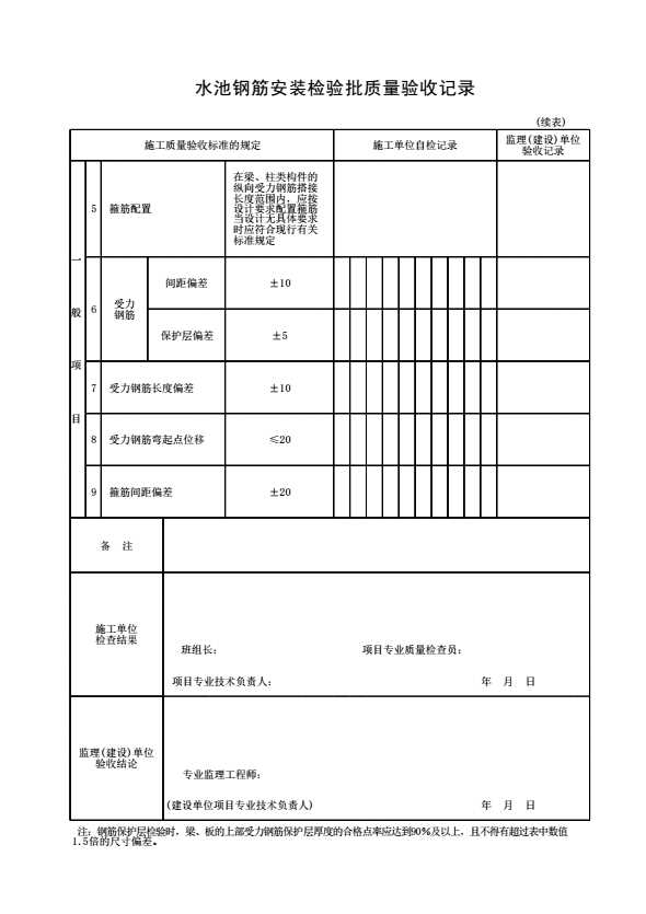 表格名称:水池钢筋安装检验批质量验收记录