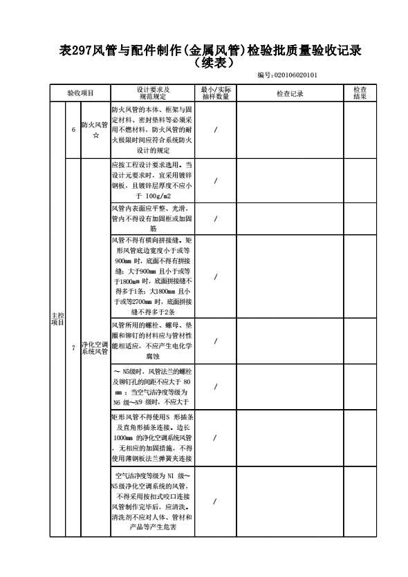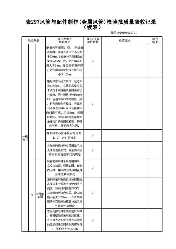 表格名称:020106020101 风管与配件制作(金属风管)检验批质量验收记录