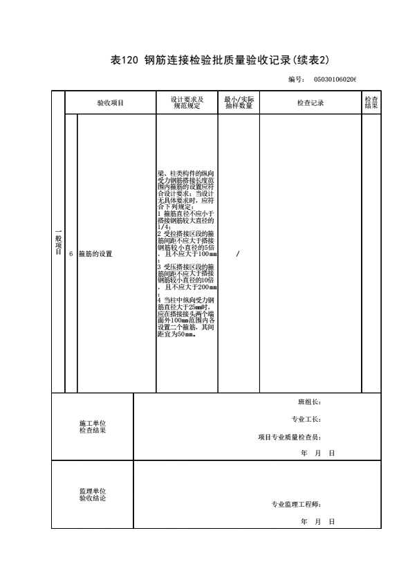 表格名称:050301060206 钢筋连接检验批质量验收记录