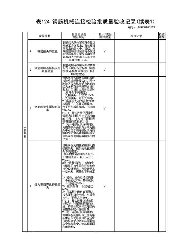 表格名称:050501050211 钢筋机械连接检验批质量验收记录