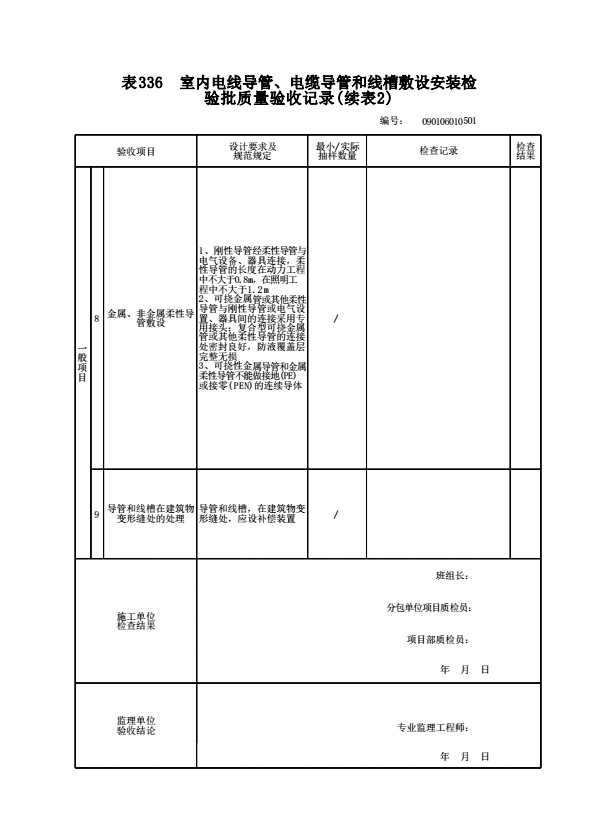 表格名称:090106010501 室内电线导管、电缆导管和线槽敷设安装检验批质量验收记录