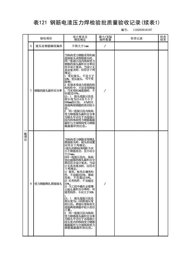 表格名称:110203010107 钢筋电渣压力焊检验批质量验收记录