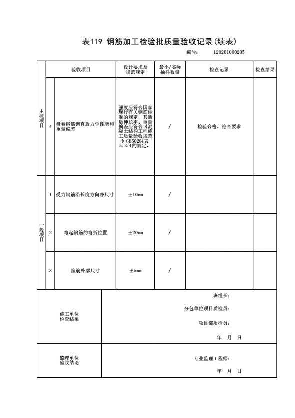 表格名称:120201060205 钢筋加工检验批质量验收记录