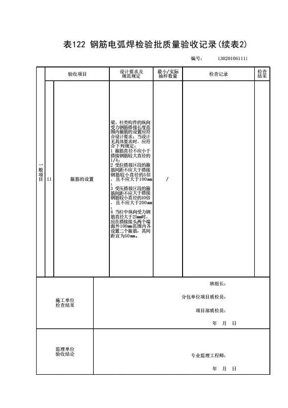 表格名称:130201061111 钢筋电弧焊检验批质量验收记录