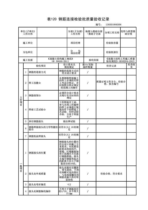 表格名称:130301060306 钢筋连接检验批质量验收记录