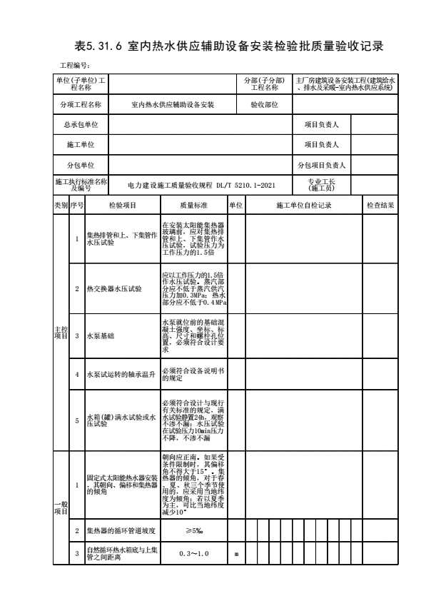 表格名称:表5.31.6 室内热水供应辅助设备安装检验批质量验收记录