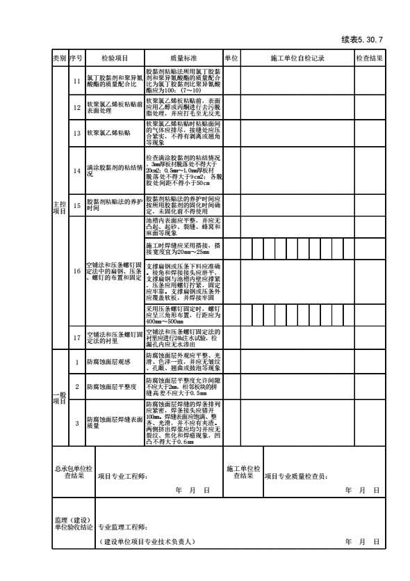 表格名称:[符合表5.30.7]表6. 6.7基础防腐涂料涂装施工检验批质量验收记录