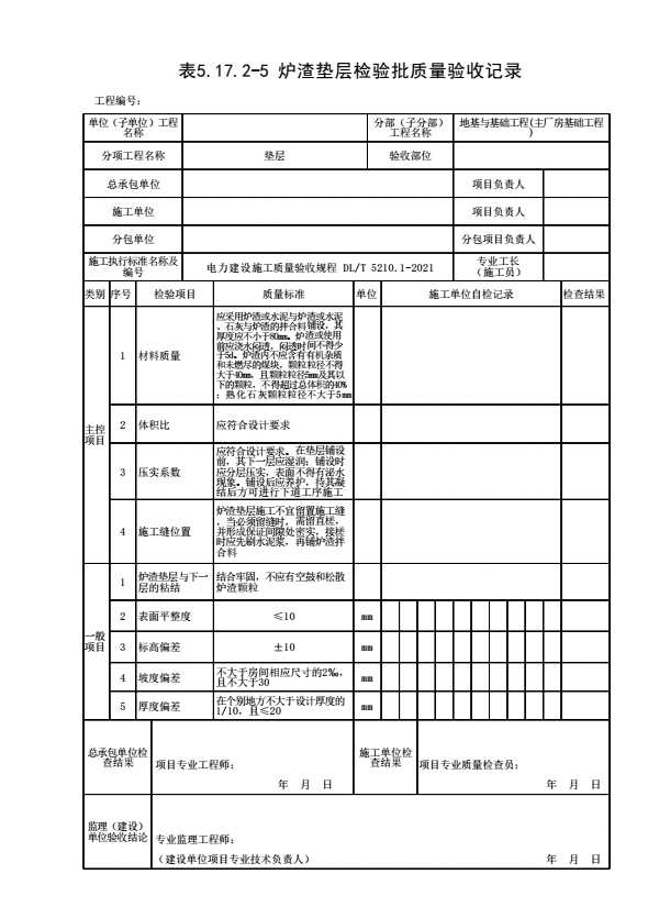 表格名称:表5.17.2-5炉渣垫层检验批质量验收记录