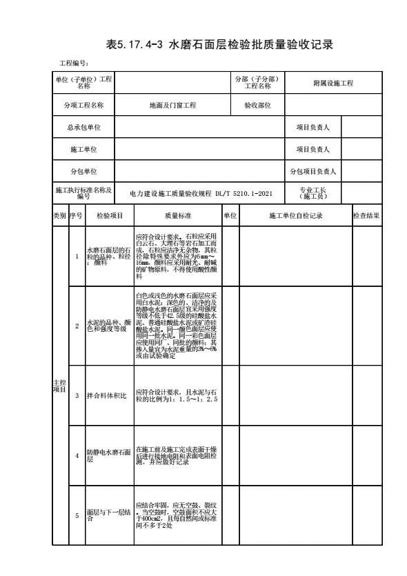 表格名称:表5.17.4-3水磨石面层检验批质量验收记录