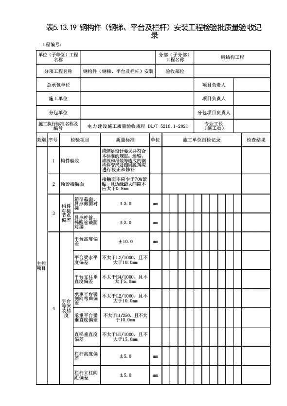 表格名称:[符合表5.13.19]表8.10.9灰库钢梯制作安装工程检验批质量验收记录