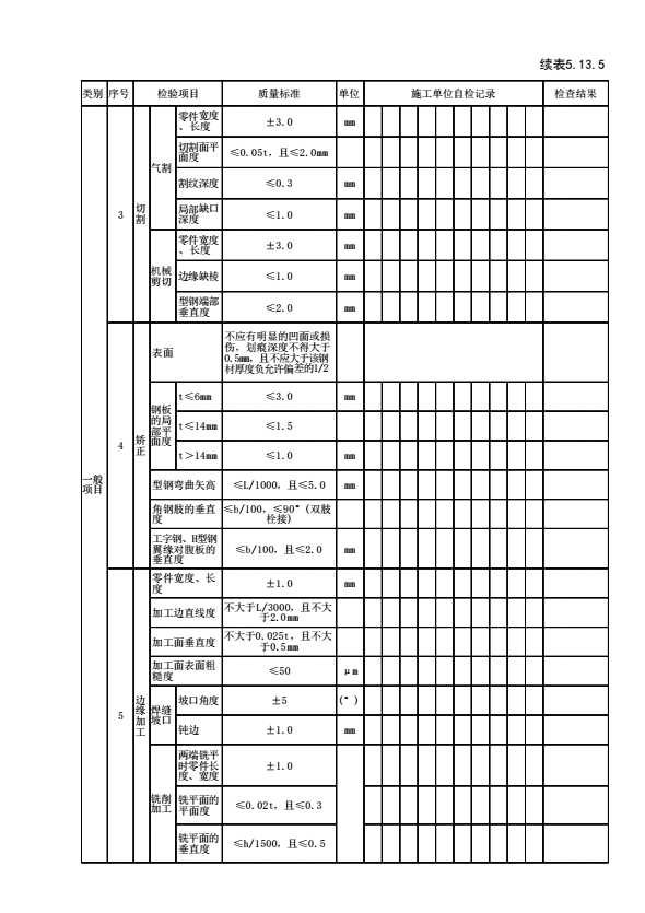 表格名称:[符合表5.13.5]表11.3.8钢支架零、部件加工工程检验批质量验收记录