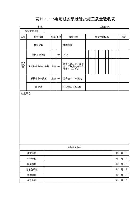 表格名称:表11.1.1-6 电动机安装检验批施工质量验收表
