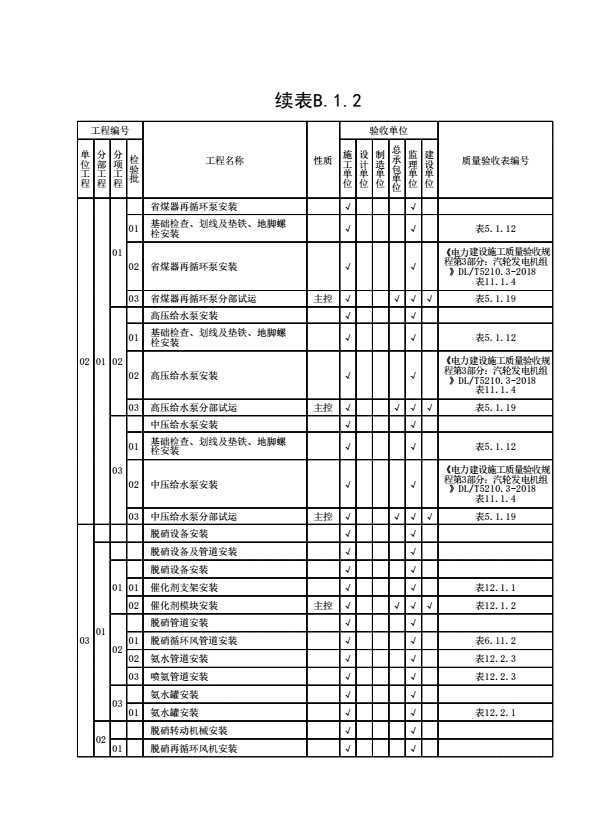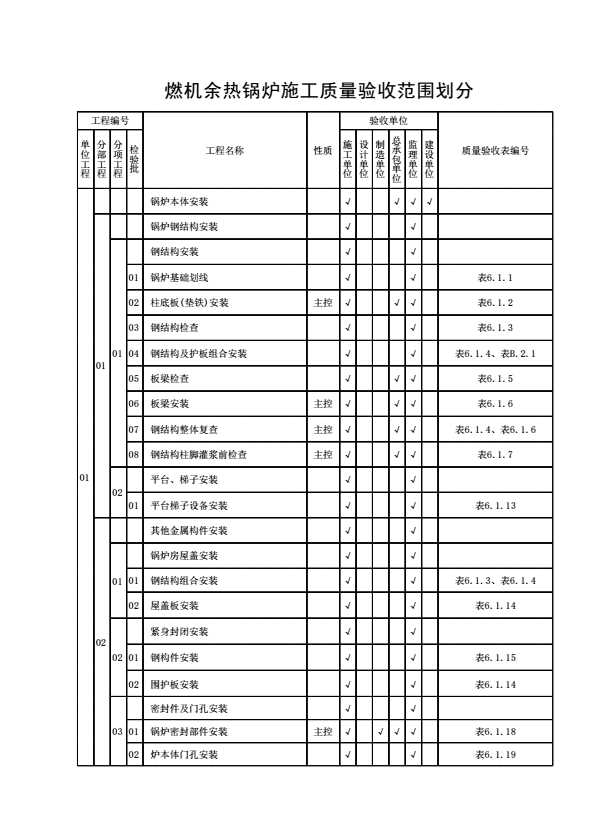 表格名称:表B.1.2 燃机余热锅炉施工质量验收范围划分