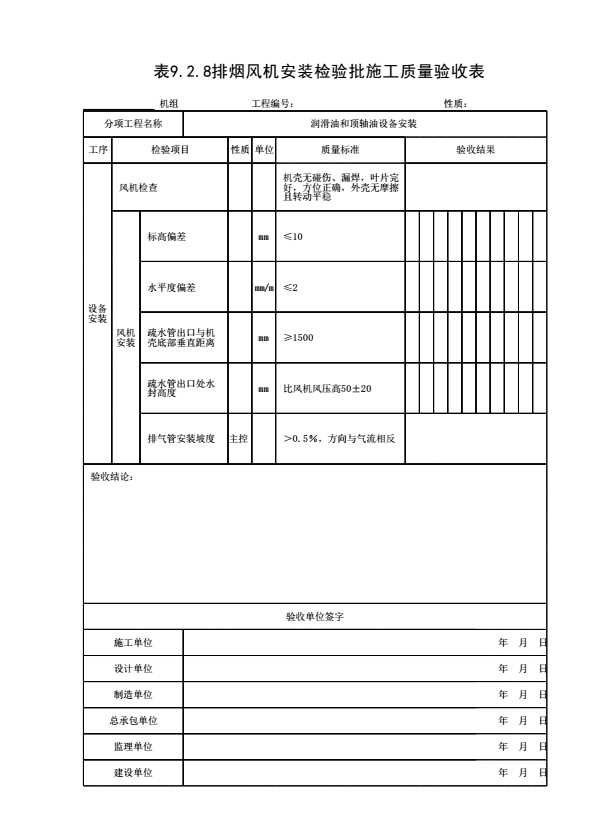 表格名称:表9.2.8 排烟风机安装检验批施工质量验收表