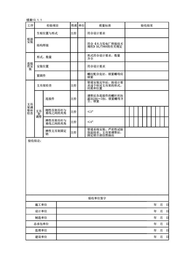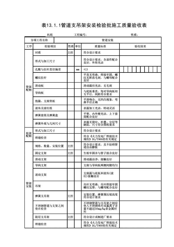 表格名称:表13.1.1 管道支吊架安装检验批施工质量验收表