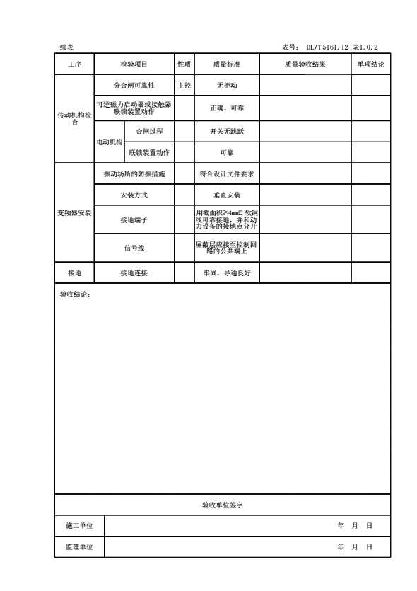 表格名称:表1.0.2 低压断路器、低压接触器、电动机启动器及变频器安装分项工程质量验收表