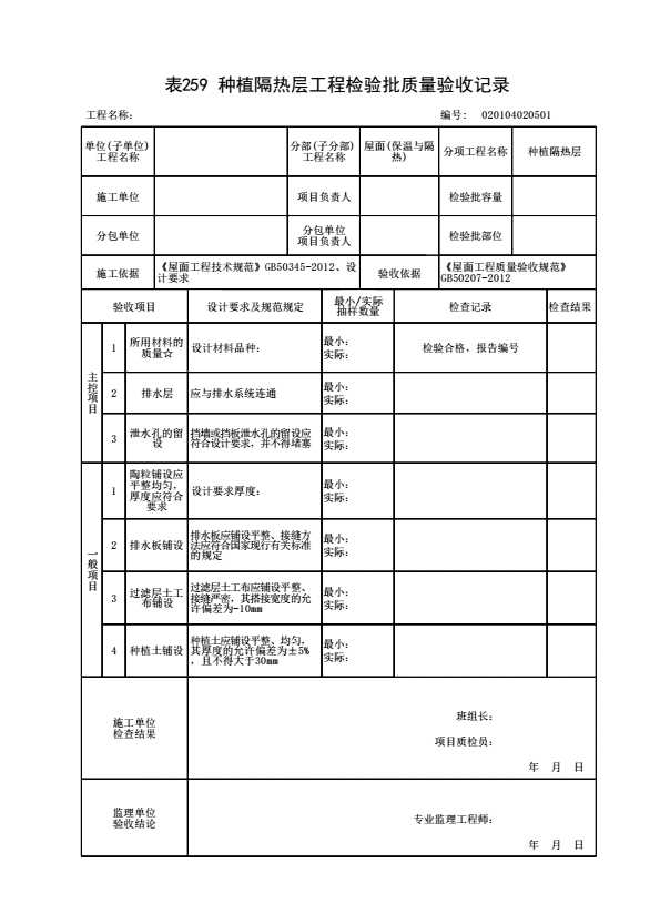 表格名称:020104020501 种植隔热层工程检验批质量验收记录