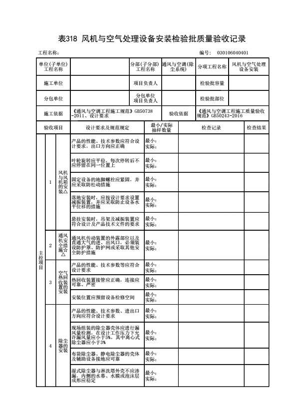 表格名称:030106040401 风机与空气处理设备安装检验批质量验收记录