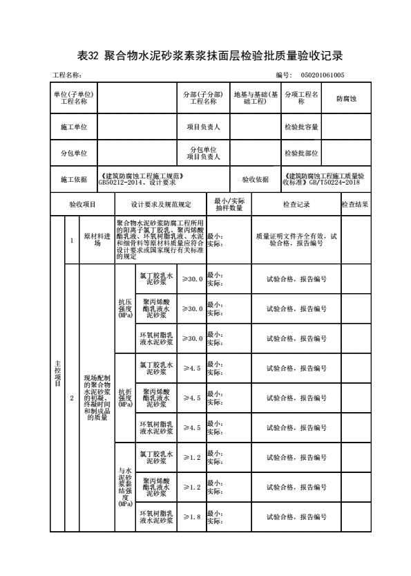 表格名称:050201061005 聚合物水泥砂浆素浆抹面层检验批质量验收记录