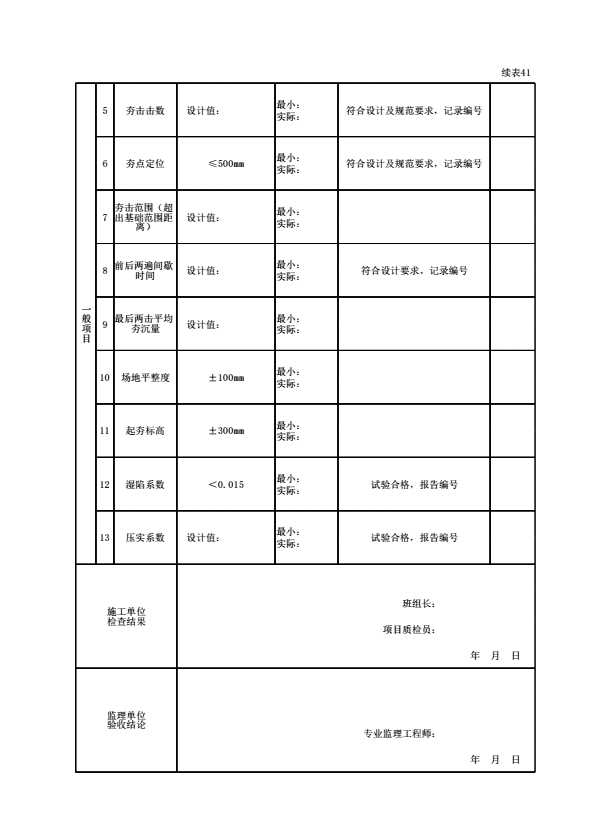 表格名称:060101040102 湿陷性黄土场地上强夯地基检验批质量验收记录