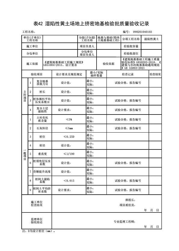 表格名称:090201040103 湿陷性黄土场地上挤密地基检验批质量验收记录