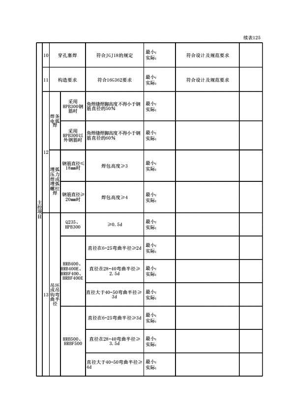 表格名称:110101060214 预埋件制作检验批质量验收记录