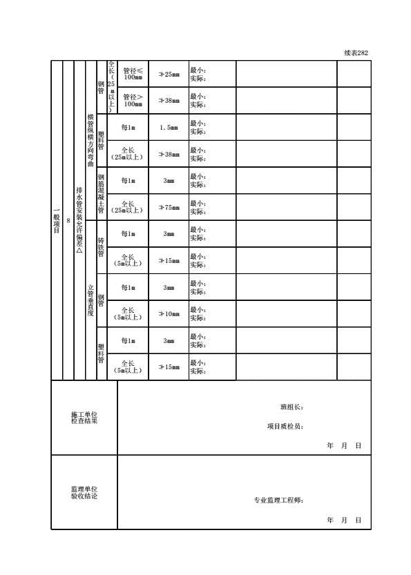 表格名称:110105020101 排水管道及配件安装检验批质量验收记录