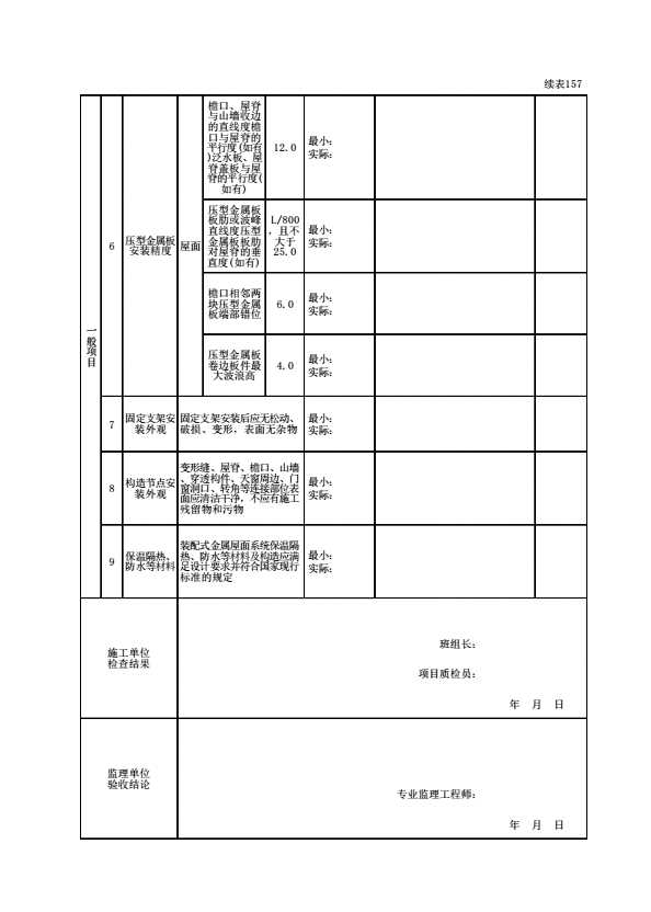 表格名称:130203030202 压型金属板(屋面)检验批质量验收记录