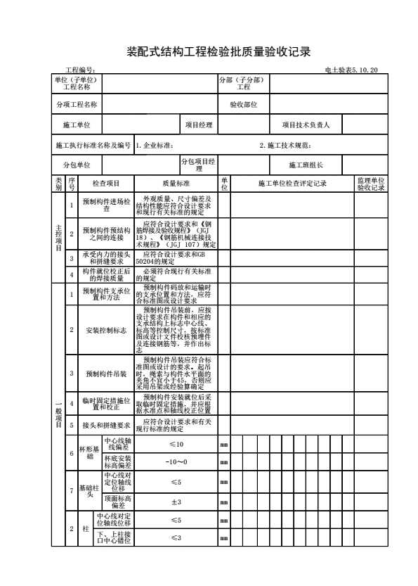 表格名称:电土验表5.10.20 装配式结构工程检验批质量验收记录