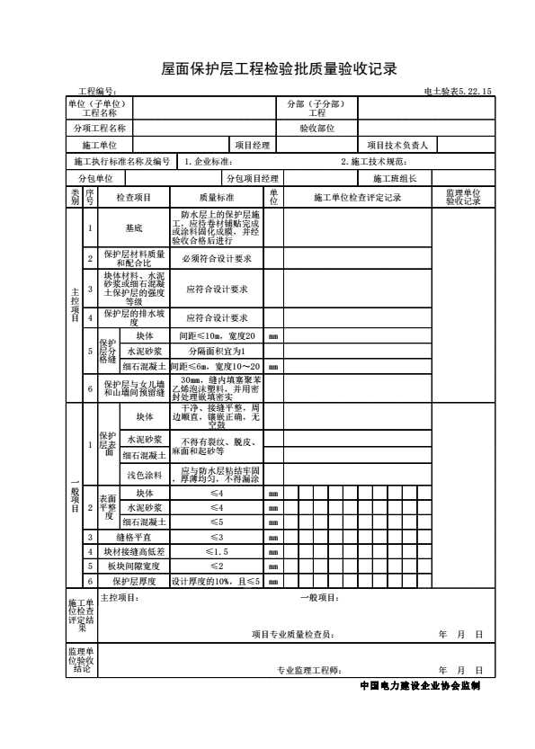 表格名称:电土验表5.22.15 屋面保护层工程检验批质量验收记录