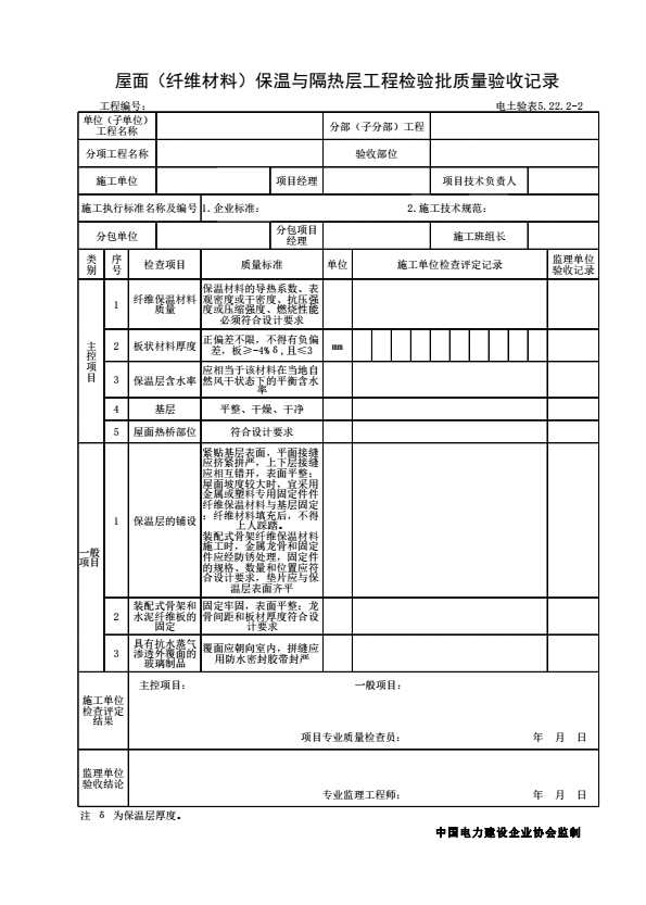 表格名称:电土验表5.22.2-2 屋面(纤维材料)保温与隔热层工程检验批质量验收记录