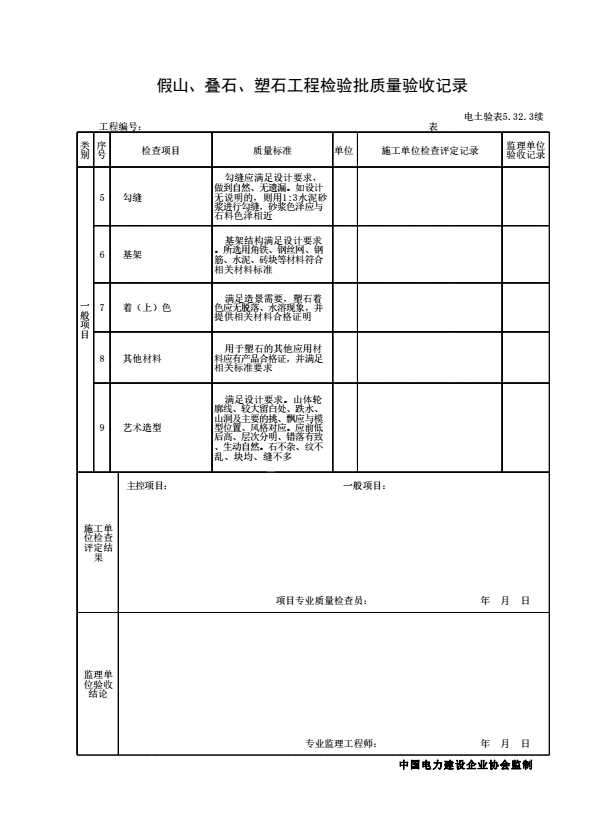 表格名称:电土验表5.32.3 假山、叠石、塑石工程检验批质量验收记录