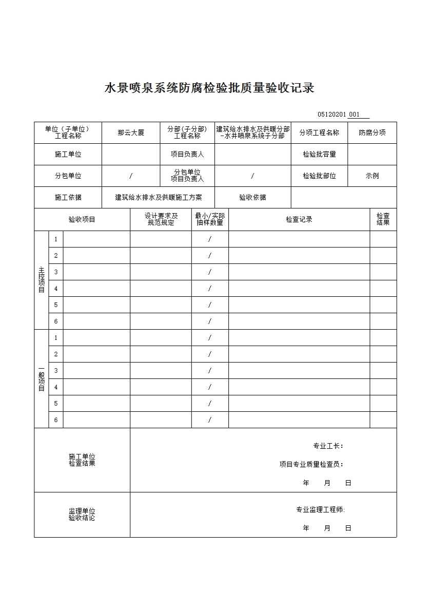 表格名称:05120201_水景喷泉系统防腐检验批质量验收记录